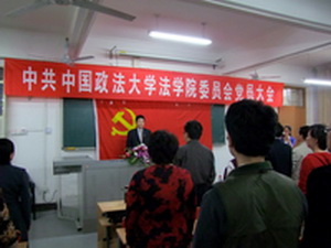 有453名教工和学生正式党员参加了大会。会议分别由分党委书记刘大炜和副书记杨学志主持,选举由总监票人屈荣莉老师和卞修全老师主持。副校长、校党委常委马怀德教授也出席了会议。