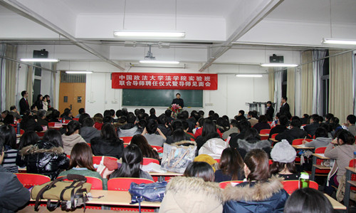 实验班培养情况及实验班联合导师的聘任情况。她指出,法学实验班卓越法律人才的培养是教育部人才改革培养的项目,法大从五年前开始率先试点,进行法律人才的培养的改革和探索,培养目标是复合型、实践型、技能型的高端法律职业人才。法学人才培养将从传统的知识传授培养的研究型人才向高端的法律职业人才转型。法学实验班实践教学双导师的聘请经过时间的尝试,课程设置、考核机制、目标都在不断调整当中。她鼓励同学们珍惜机会、踏实学习,与学校、导师形成三方互动,共同努力探索出大学生成长的路径。
