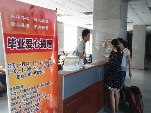 爱心捐赠活动是通过收集毕业生不便带走的书籍、生活用品等物品,并加以妥善保管,在新学期开学发放给下一级新生。该活动在我院已举办多年,一直以来深受广大毕业生和新生的喜爱。作为即将踏入社会的的毕业生而言,母校给他们留下的不仅有美好的回忆,还有始终伴随他们的小物品,很多他们带不走却又难以割舍,鉴于此,爱心捐赠活动不仅可以实现资源的循环利用,更重要的是可以帮助毕业生将他们对母校的爱延续下去,给师弟师妹们送去一份温暖的心意,意义重大。